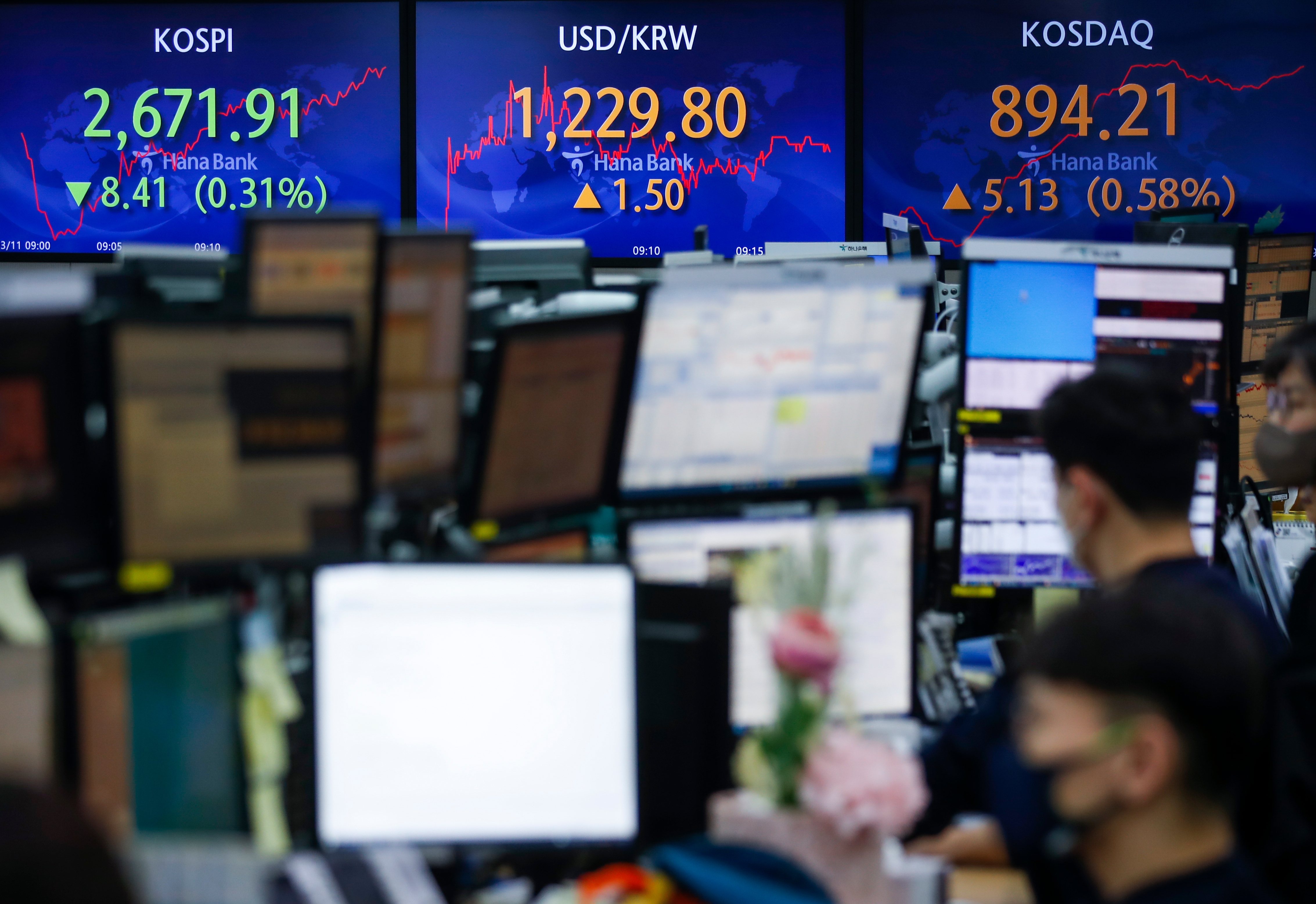 이미지 확대보기3일 한국거래소에 따르면 이날 코스피는 전 거래일 대비 0.26%(6.99포인트) 떨어진 2680.46에 거래를 마감했다.