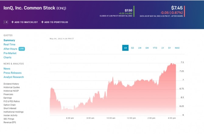 이미지 확대보기5일 뉴욕증시에 따르면 아이온큐에 폰지식 속임수 주장이 제기되면서 주가가 흔들리고 있다. 아이온큐는 한국인 김정상 교수가 창업한 뉴욕증시 상장기업으로 삼성전자도 투자했다. 미국 공매도 전문 투자사인 스콜피온캐피털은 이날 아이온큐를 정조준한 보고서를 냈다. 이 보고서 따르면 아이온큐의 전·현직 임직원 7명을 포함한 25명과 인터뷰한 결과 아이온큐가 양자컴퓨터 기술과 관련한 폰지 즉 다단계 사기극을 벌였다는 결론을 내렸다는 것이다. 스콜피온캐피털은 아이온큐의 핵심 기술인 32큐 비트 즉 퀀텀비트·양자컴퓨터 및 정보의 기본 단위 시스템이 아예 실체가 없다고 주장했다. 아이온큐는 2020년 10월 32큐비트 양자컴퓨터 시스템을 개발했다고 발표하면서 세계적 주목을 끌었다. 아이온큐는 뉴욕증시에서 스팩(기업인수목적회사)과 합병해 2021년 10월 뉴욕증시에 상장했다. 양자 컴퓨터 기업이 뉴욕증시에 입성한 세계 최초 사례이다.