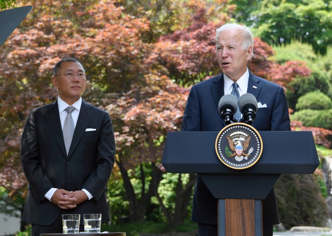 조 바이든 미국 대통령 방한에 맞춰 105억달러에 달하는 대규모 투자 계획을 밝힌 현대차그룹에 대해 증권사들이 23일 긍정적 평가를 했기 때문으로 풀이된다.