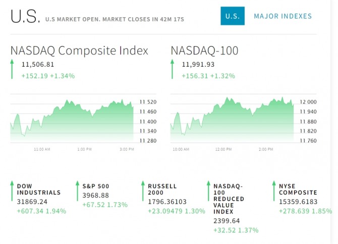 유럽 증시는 상승세를 보이며 마감했다. 영국 런던 증시의 FTSE 100 지수는 전 거래일 종가 대비 1.67% 상승한 7,513.44로 거래를 마쳤다. 독일 프랑크푸르트 증시의 DAX30 지수는 1.38% 오른 14,175.40으로, 또 프랑스 파리 증시의 CAC40 지수도 1.17% 상승한 6,358.74로 각각 장을 마감했다. 범유럽 지수인 유로 Stoxx 50지수는 1.40% 오른 3,708.39로 거래를 종료했다.