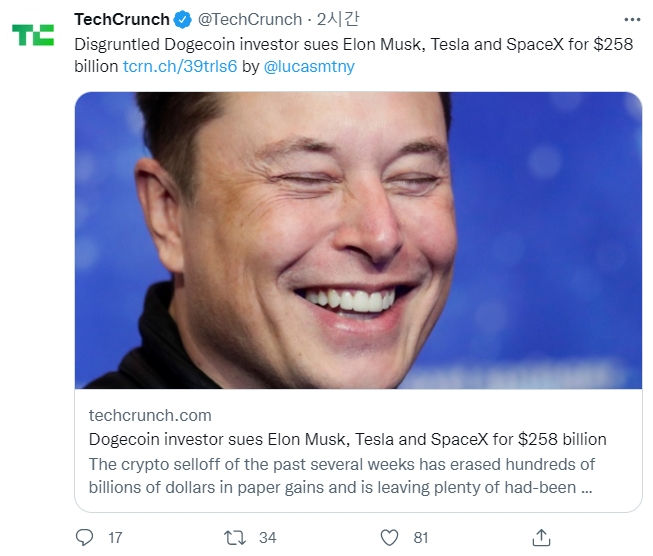 이 소송의 원고는 머스크가 자신의 트위터에서 개를 주제로 한 암호화폐를 자주 언급했는데, 이는 종종 토큰의 가격을 치솟게 만들었다고 지적했다.