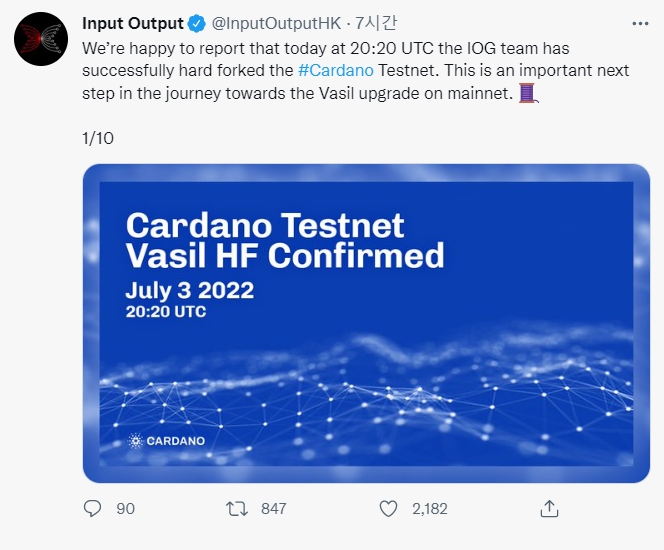 업데이트에 따르면 카르다노 테스트넷은 변경사항이 적용되었는지 확인한 후 메인넷에서 볼 수 있는 바실 기능과 개선 사항을 즐길 수 있다.