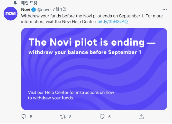 노비의 웹사이트 방문 페이지는 파일럿 사용자에게 플랫폼이 9월 1일에 서비스를 중단할 것임을 알리기 위해 개편됐다. 이로써 미국과 과테말라에 기반을 둔 사용자들이 암호화폐로 구동되는 결제 플랫폼을 시험하는 것을 목격한 8개월간의 시범 프로젝트가 막을 내렸다.