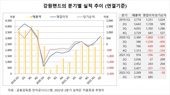 이미지 확대보기키움증권은 강원랜드의 올해 2분기 연결기준 매출액이 3138억원, 영업이익이 685억원에 이를 것으로 내다보고 있습니다.