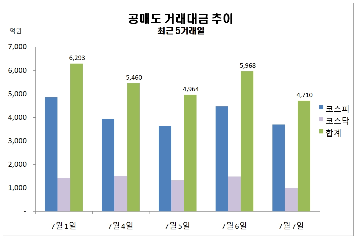 이미지 확대보기이날 공매도 거래대금은 전 거래일 보다 1257억원 감소한 금액이다.