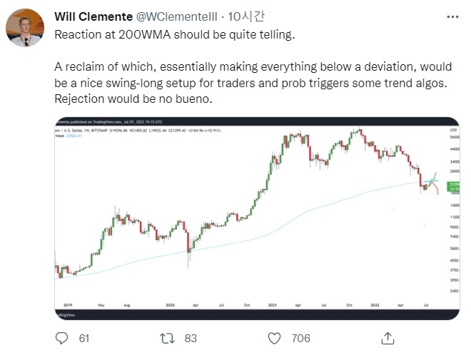 클레멘테는 "200WMA에서의 반응은 매우 분명해야 한다"고 강조했다.