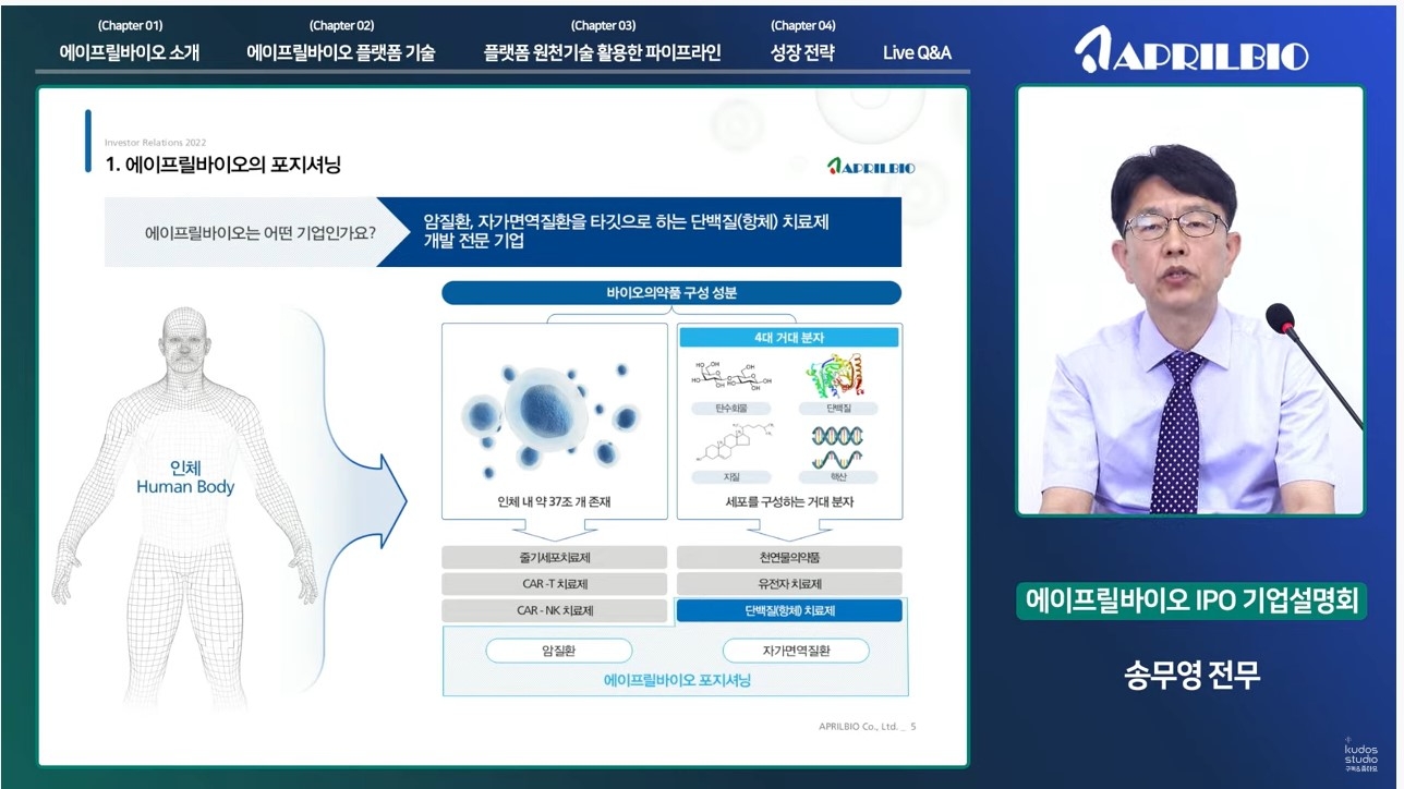 이미지 확대보기에이프릴바이오는 기술특례 상장을 통해 7월 말 코스닥 시장에 상장될 예정이다.