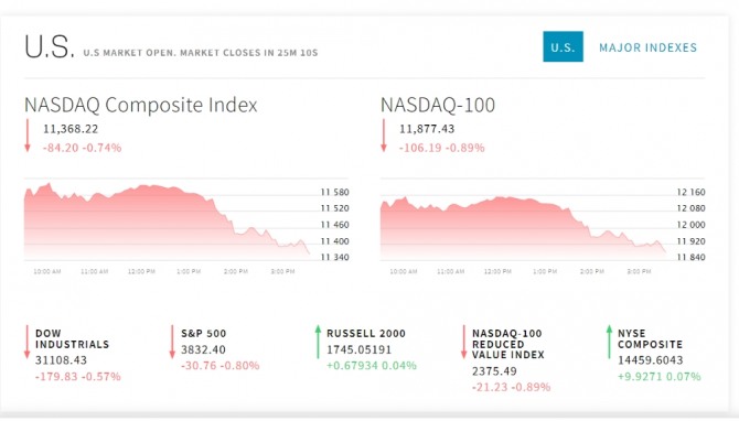 19일 뉴욕증시에 따르면 나스닥 다우지수 는미국 주요 은행들의 실적이 예상치를 웃돌면서 상승 출발했다. 잘나가다가 연준의 긴축 공포가 엄습하면서 뉴욕 증권거래소(NYSE)에서 다우존스30산업평균지수와 스탠더드앤드푸어스(S&P)500지수 그리고 기술주 중심의 나스닥 지수는 지금은 모두 떨어지고 있다.