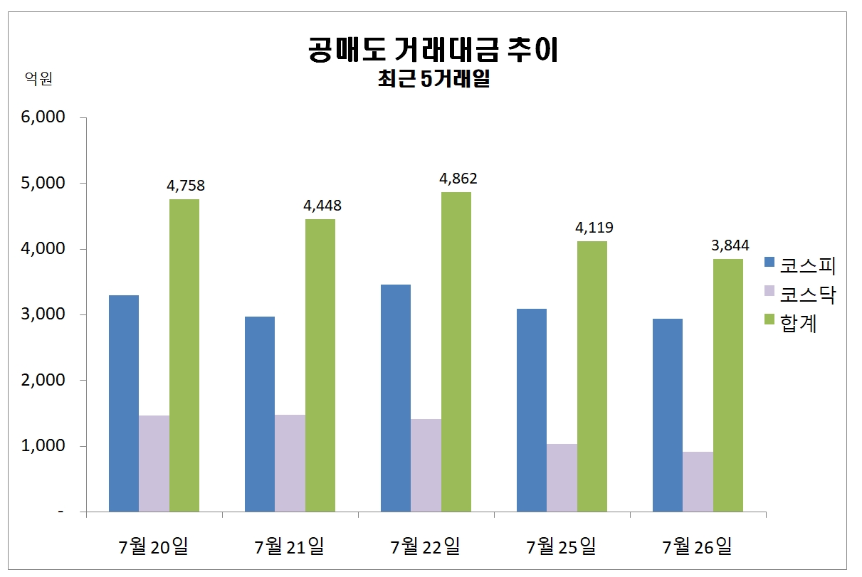 이미지 확대보기이날 공매도 거래대금은 전 거래일 보다 274억원 감소한 금액이다.