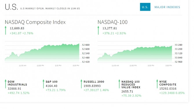 CVS헬스와 모더나는 이날 시장의 예상치를 웃도는 호전된 실적을 발표했다. AMD의 주가는 분기 순이익과 매출이 시장의 예상을 웃돌았다는 소식에도 하락했다. 로빈후드의 주가는 직원 23%를 감원하겠다고 발표하면서 15% 이상 올랐다. 에어비앤비의 주가는 순익 전환 소식에도 하락했다. 페이팔의 주가는 예상치를 웃돈 실적과 자사주매입 계획 등으로 올랐다.