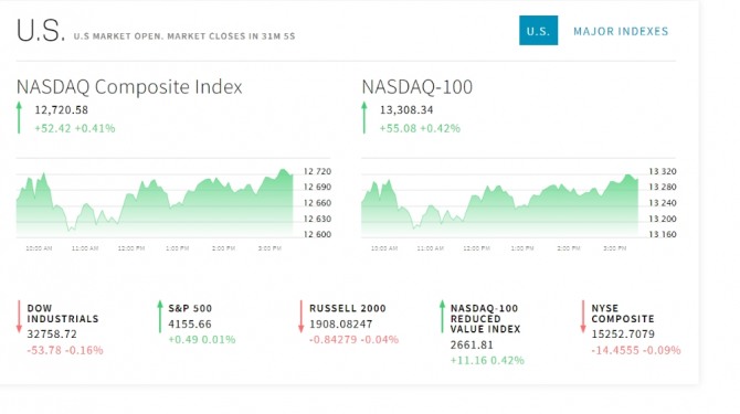 이미지 확대보기5일 뉴욕증권거래소(NYSE)에 따르면 다우존스30산업평균지수는 국제유가 급락에 따른 정유주 하락으로 약세다. 스탠더드앤드푸어스(S&P)500지수와 나스닥 지수는 오르고 있다.,