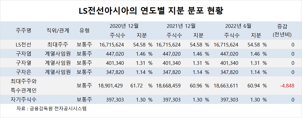 이미지 확대보기LS전선아시아의 최대주주는 LS전선으로 지분 54.58%를 보유하고 있습니다.