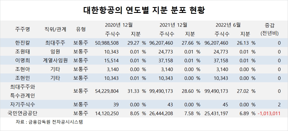 이미지 확대보기대한항공의 최대주주는 한진칼로 지분 26.13%를 보유하고 있습니다.