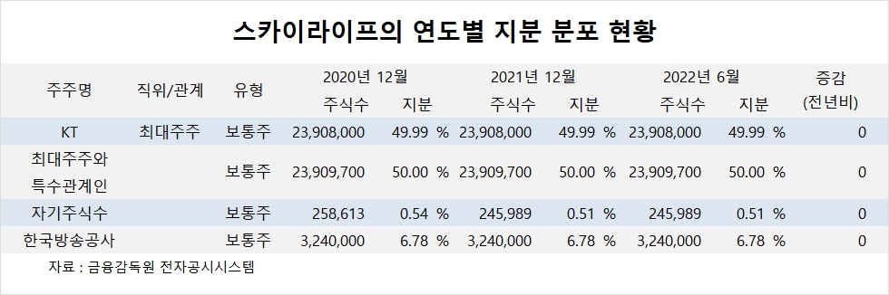 이미지 확대보기스카이라이프의 최대주주는 KT로 지분 44.99%를 보유하고 있습니다.