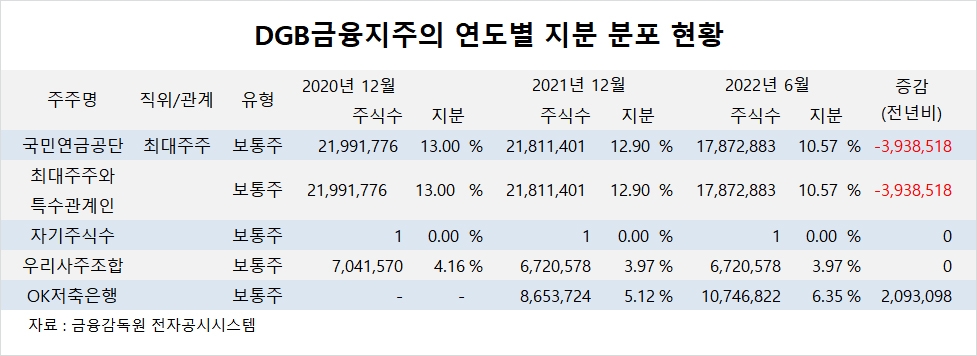 DBG금융지주는 OK저축은행이 지분 6.35%를 확보하며 2대주주로 등장했습니다.