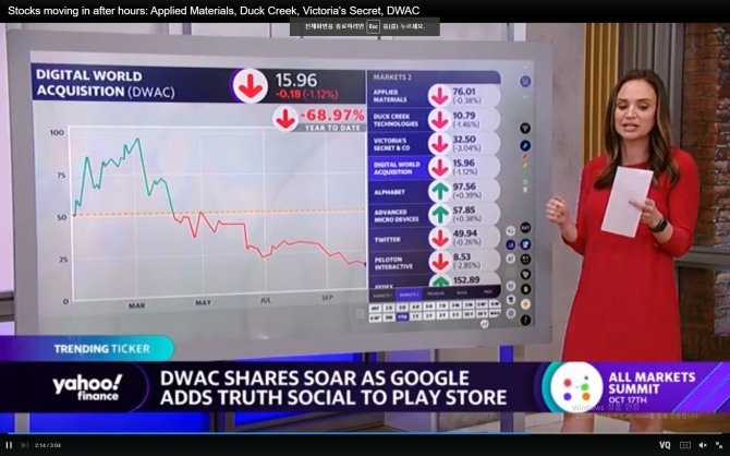이같은 소식이 전해진 후 트럼프미디어와 합병해 이 소셜미디어 업체를 우회상장하기로 한 DWAC의 주가가 시간외거래에서 급등했다.