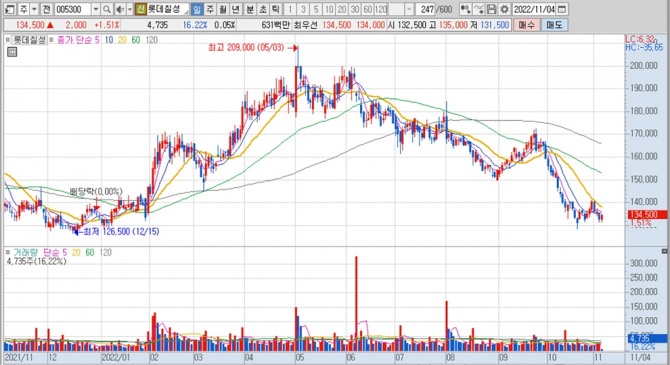 이미지 확대보기롯데칠성의 주가는 4일 오전 9시 30분 현재 전일보다 2000원(1.51%) 오른 13만4500원에 거래되고 있습니다.