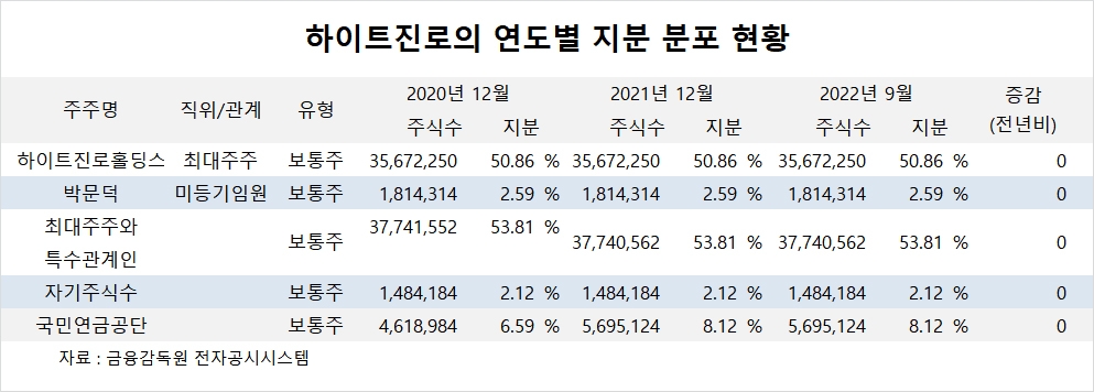 이미지 확대보기하이트진로의 최대주주는 하이트진로홀딩스로 지분 50.86%를 보유하고 있습니다.