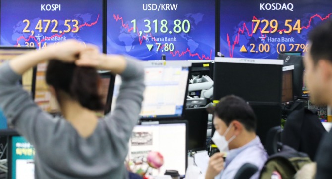 이미지 확대보기30일 한국거래소에 따르면 코스피는 전 거래일 2433.39보다 39.14포인트(1.61%) 상승한 2472.53에 장을 마감했다.