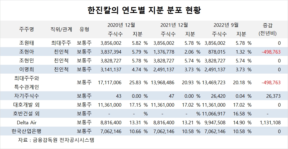 이미지 확대보기한진칼의 최대주주는 조원태 회장으로 지분 5.78%를 보유하고 있습니다.