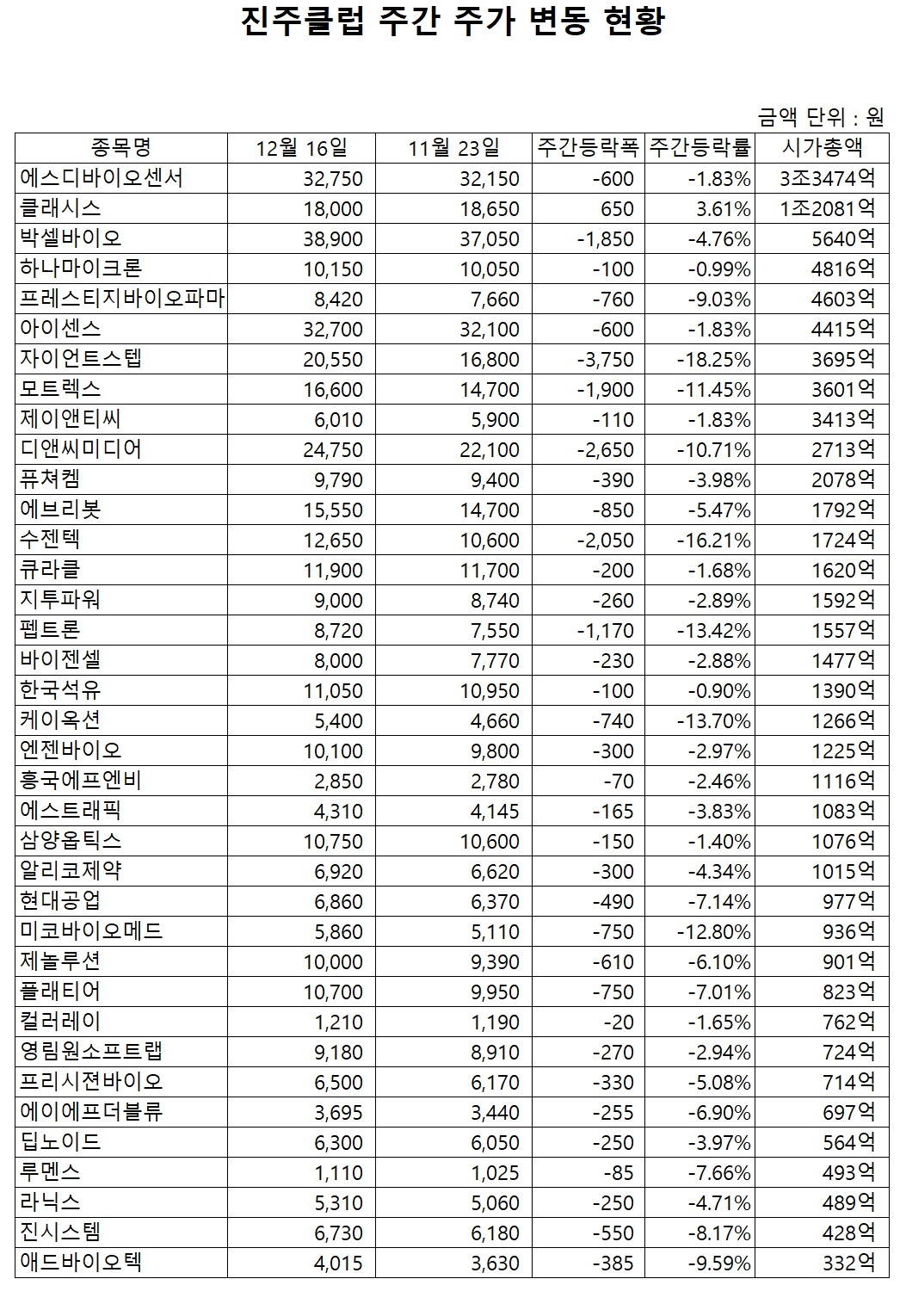이미지 확대보기진주클럽 구성 종목의 지난 한주간 주요 종목 소식은 다음과 같다.