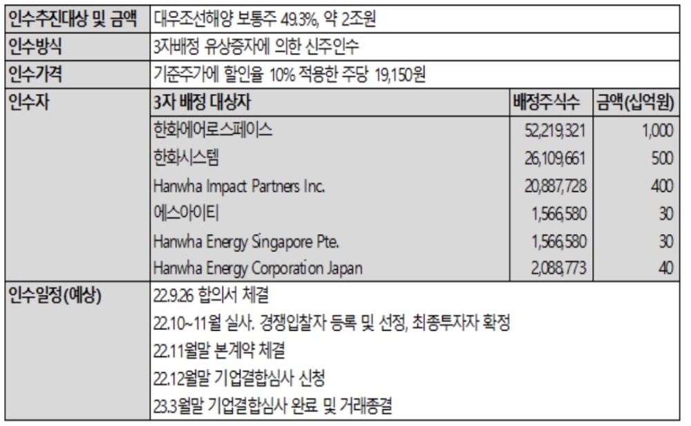 다만 대우조선해양이 지난해부터 올해 3분기까지 약 3조원의 순손실을 기록한 만큼 한화에어로스페이스의 재무 부담이 커질 수 있다는 우려도 나온다. 또 지난 9월 말 별도 기준 대우조선해양의 부채비율은 1433.6%에 달하며, 자본으로 분류된 신종자본증권 2조3000억원도 사실상 부채라는 문제가 있다.