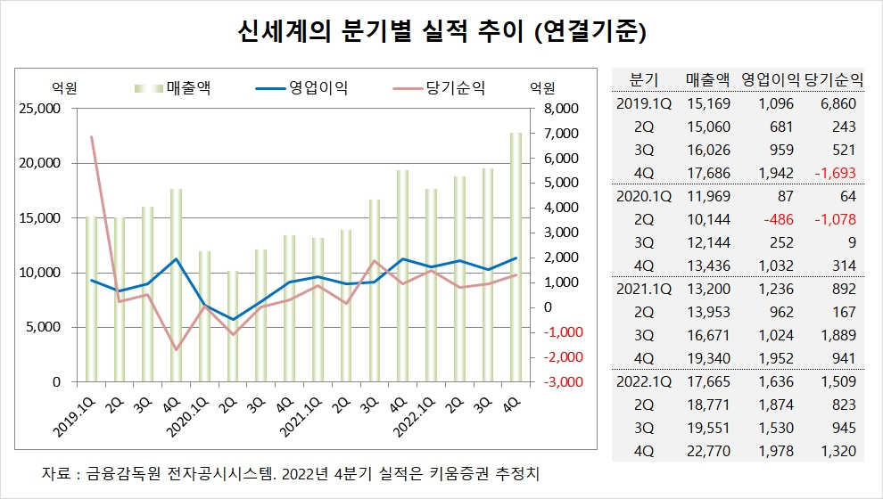 이미지 확대보기키움증권은 신세계의 지난해 4분기 연결기준 매출액이 2조2770억원, 영업이익이 1978억원, 당기순이익이 1320억원에 이를 것으로 전망하고 있습니다.