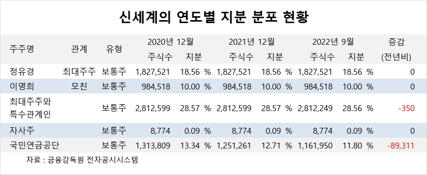 이미지 확대보기신세계의 최대주주는 정유경 총괄사장으로 지분 18.56%를 보유하고 있습니다.