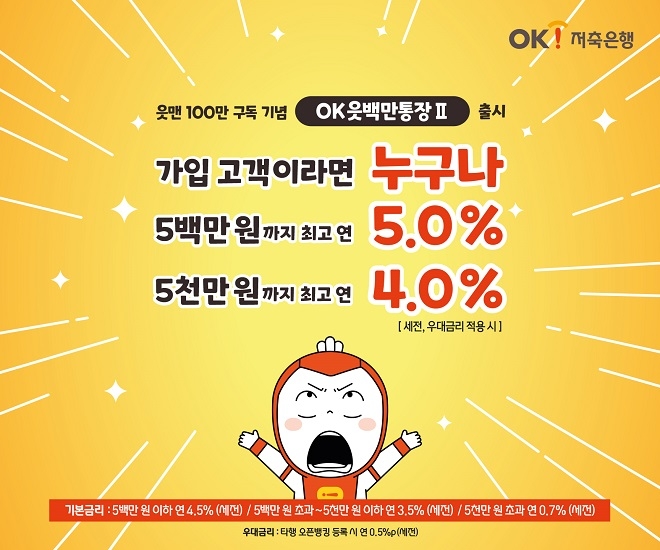 개인고객 대상 상품 2종은 가입금액 3억원까지 연 4.0%의 금리를 준다. 3억원 초과 금액의 경우에는 연 0.1%의 금리를 지급한다. 플러스 법인통장은 가입금액 30억원까지 연 4.0% 금리를 준다.