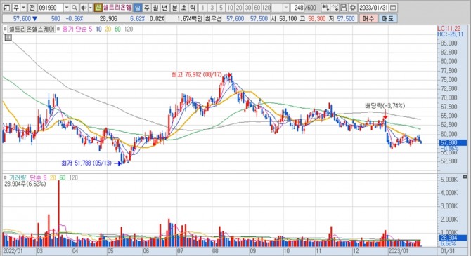 이미지 확대보기셀트리온헬스케어의 주가는 31일 오전 9시 10분 현재 전일보다 500원(0.86%) 내린 5만7600원에 매매되고 있습니다.