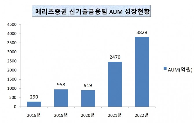 메리츠증권 관계자는 "올해 신기술투자조합 AUM을 5천억원까지 확대할 것"이라며 "다양한 투자기관과 협업해 고객에게 우량한 투자 기회를 제공하겠다"라고 덧붙였다.