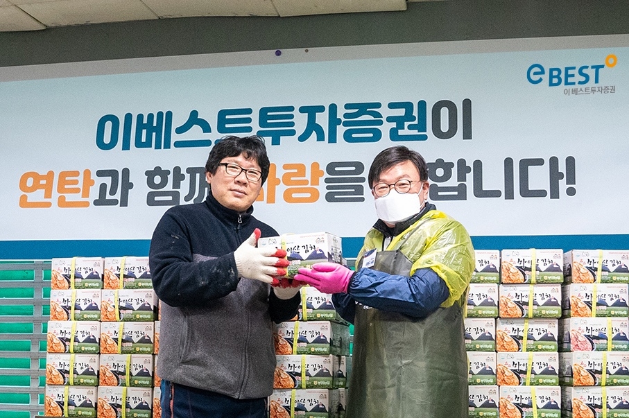 이미지 확대보기6일 이베스트투자증권에 따르면 이 회사 김원규 대표와 임직원등 50여 명은지난달 31일 서울시립영등포쪽방상담소와 함께 연탄 3000장과 김치 100팩을 영등포 쪽방촌 주민들에게 직접 전달했다.