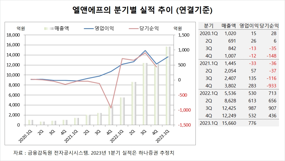 엘앤에프는 지난해 4분기 실적을 잠정 집계한 결과 연결기준 매출액이 1조2249억원, 영업이익이 532억원, 당기순이익이 436억원을 기록할 것이라고 공시했습니다.