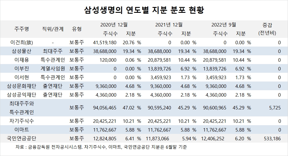 이미지 확대보기삼성생명의 최대주주는 삼성물산으로 지분 19.34%를 보유하고 있습니다.