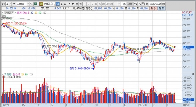 이미지 확대보기삼성전자의 주가는 20일 오전 9시 3분 현재 전일보다 400원(0.65%) 내린 6만900원에 거래되고 있습니다.