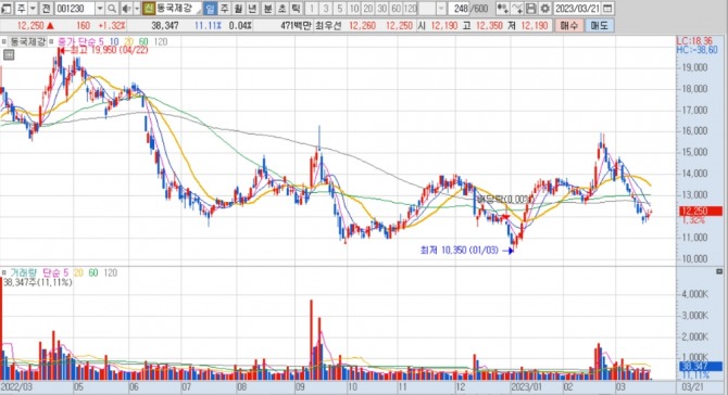 이미지 확대보기동국제강의 주가는 21일 오전 9시 10분 현재 전일보다 160원(1.32%) 오른 1만2250원에 매매되고 있습니다.
