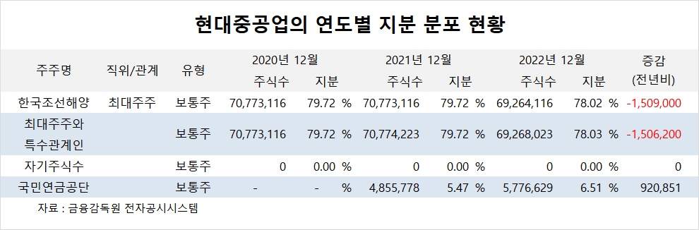 이미지 확대보기현대중공업의 최대주주는 한국조선해양으로 지분 78.02%를 보유하고 있습니다.