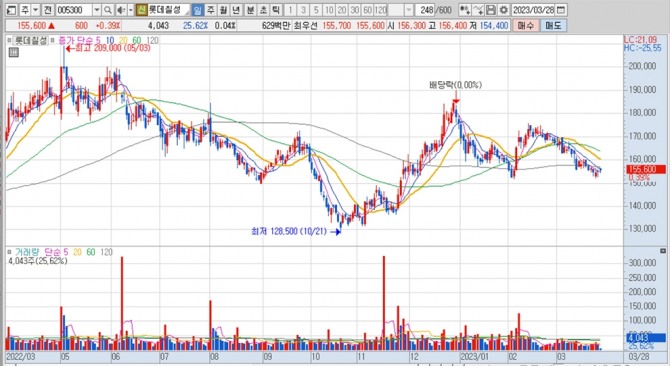 이미지 확대보기롯데칠성의 주가는 28일 오전 9시 40분 현재 전일보다 600원(0.39%) 오른 15만5600원에 거래되고 있습니다.