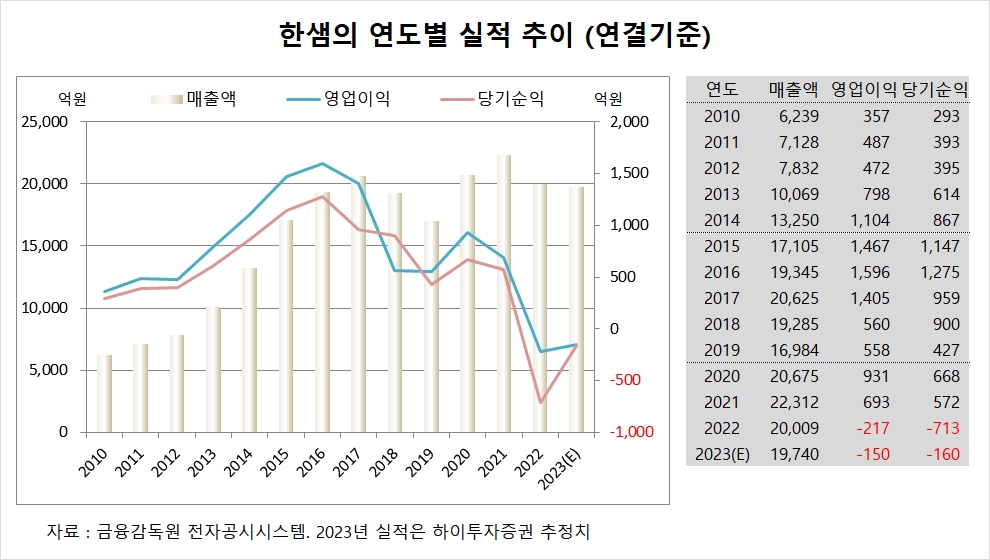 하이투자증권은 한샘의 올해 연결기준 매출액이 1조9740억원, 영업이익이 –150억원, 당기순이익이 –160억원에 이를 것으로 전망하고 있습니다.