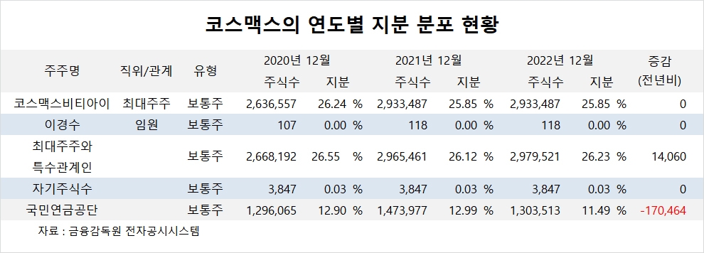 이미지 확대보기코스맥스의 최대주주는 코스맥스비티아이로 지분 25.85%를 보유하고 있습니다.