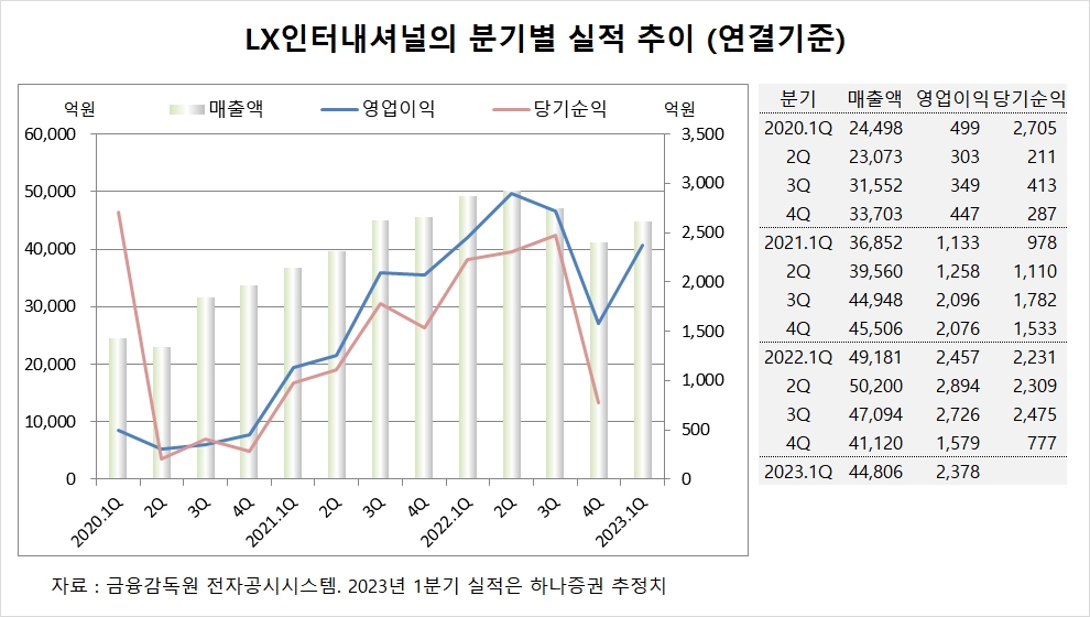 LX인터내셔널은 지난해 연결기준 매출액이 18조7595억원, 영업이익이 9655억원, 당기순이익이 7793억원으로 집계됐습니다.