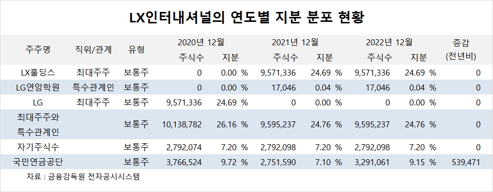 이미지 확대보기LX인터내셔널의 최대주주는 LX홀딩스로 지분 24.69%를 보유하고 있습니다.