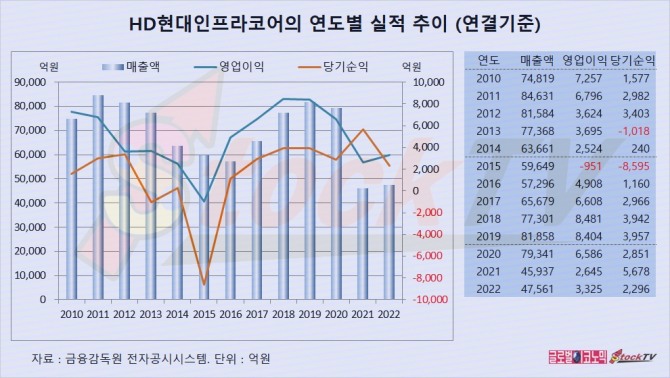 HD현대인프라코어의 연도별 실적은 2021년 8월 19일 최대주주가 현대제뉴인으로 바뀌면서 2021년도 실적에도 조정이 있었습니다.