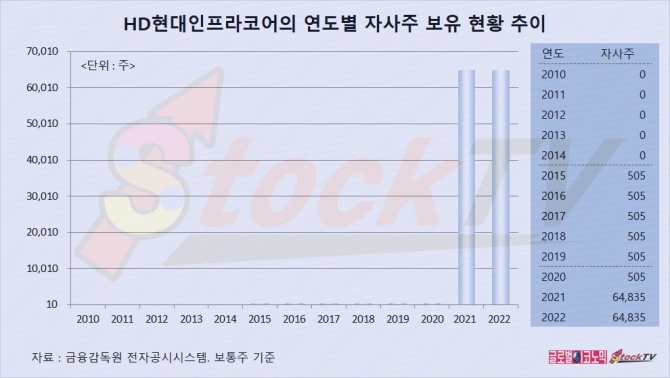 HD현대인프라코어는 2022년 말 기준으로 자기주식을 6만4835주 보유하고 있습니다.