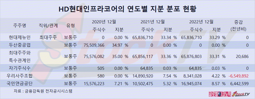 국민연금공단은 지난해 HD현대인프라코어의 지분을 높였습니다.