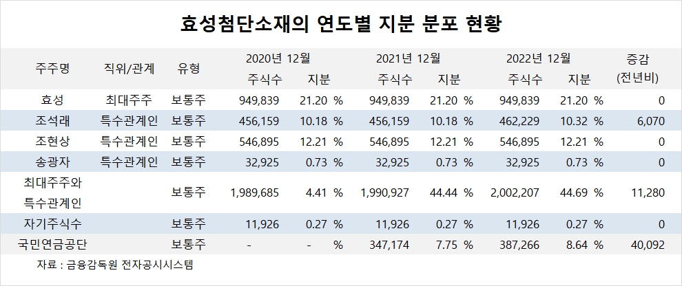 국민연금공단은 지난해 효성첨단소재 지분을 높였습니다.