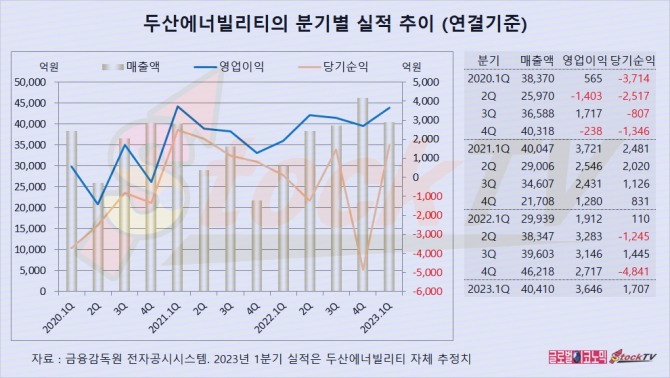 두산에너빌리티의 2023년 1분기 연결기준 매출액은 4조410억원으로 전년동기보다 35% 증가했습니다.