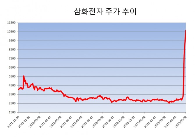 이미지 확대보기4일 한국거래소에 따르면 삼화전자는 지난 2일 시가총액 1000억원을 돌파해 1290억원까지 치솓았다. 지난해 말 시가총액 349억원과 비교하면 올해 들어서만 약 3배 가까이 급성장한 것이다.