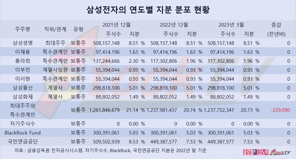 삼성전자의 최대주주는 삼성생명으로 지분 8.51%를 보유하고 있습니다.