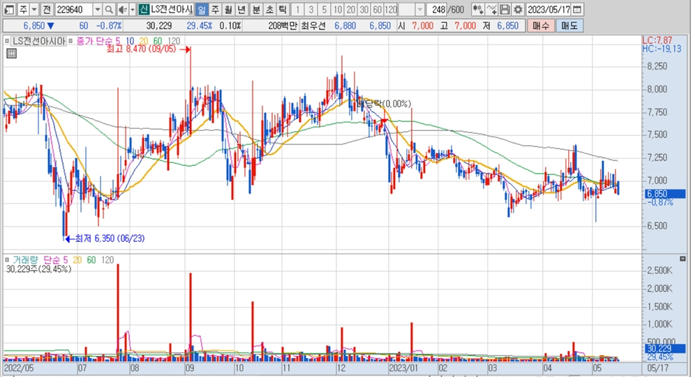이미지 확대보기LS전선아시아의 주가는 17일 오전 10시 20분 현재 전일보다 60원(0.87%) 내린 6850원에 거래되고 있습니다.